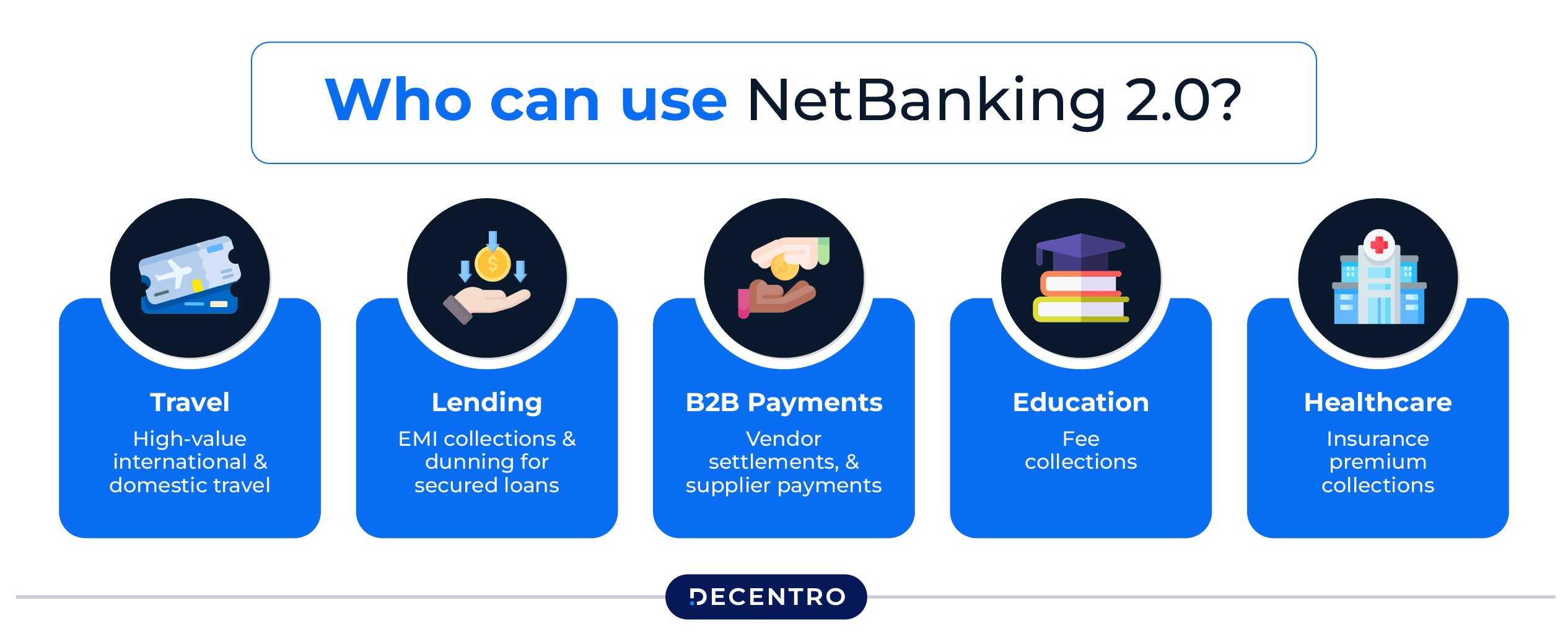 Educational institutions and edtech platforms can leverage NetBanking 2.0 for effortless collection of tuition fees, course enrollments, and hostel payments. By integrating once through Decentro’s APIs, institutions can offer parents and students a standardised, bank-agnostic payment experience — complete with real-time tracking and reconciliation.
